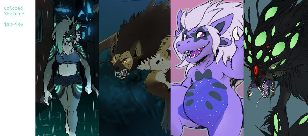 My commission prices range by complexity and how many hours it takes to do them. I charge $20 an hour for each piece of work. Basically, prices are deducted or increased based on how simple or complex an image or character is. I have timed myself doing these works throughout my years as an artist to estimate a basic price range. There will be additional fees for things that could take me longer than the base time/price that I expected.Additional fees or discounts usually range between 25%, 50% and 75%. All art features a base price for two characters per image. If an image exceeds over two characters a 30% fee is applied to each additional character added to the image.While I used to take pornographic commissions, I will be limiting such to close friends, Patreon and YCH special. Otherwise, commissions from now on must be either SFW or suggestive. More will be covered in my TOS. Be sure to read it.I announce when I’m open through Bluesky, Furaffinity, patreon, tumblr or cara and my discord server (once I make it). I take commission orders through google forms then send out private messages and invoices once I’ve accepted them. I usually accept whatever ones interest me, but if I have too many coming in I may not always be able to accept all forms signed. That’s ok though, for you can sign a form the next time I open up if that happens.I do decline commissions based on toxic behavior though [basically if you were disrespectful or tried to scam me] or if what's requested falls under my ‘What I won’t Draw’ category.If you would like to commission me or keep in touch, please follow the links listed on my Carrd.I DO NOT ALLOW MY WORK TO BE USED FOR AI!!